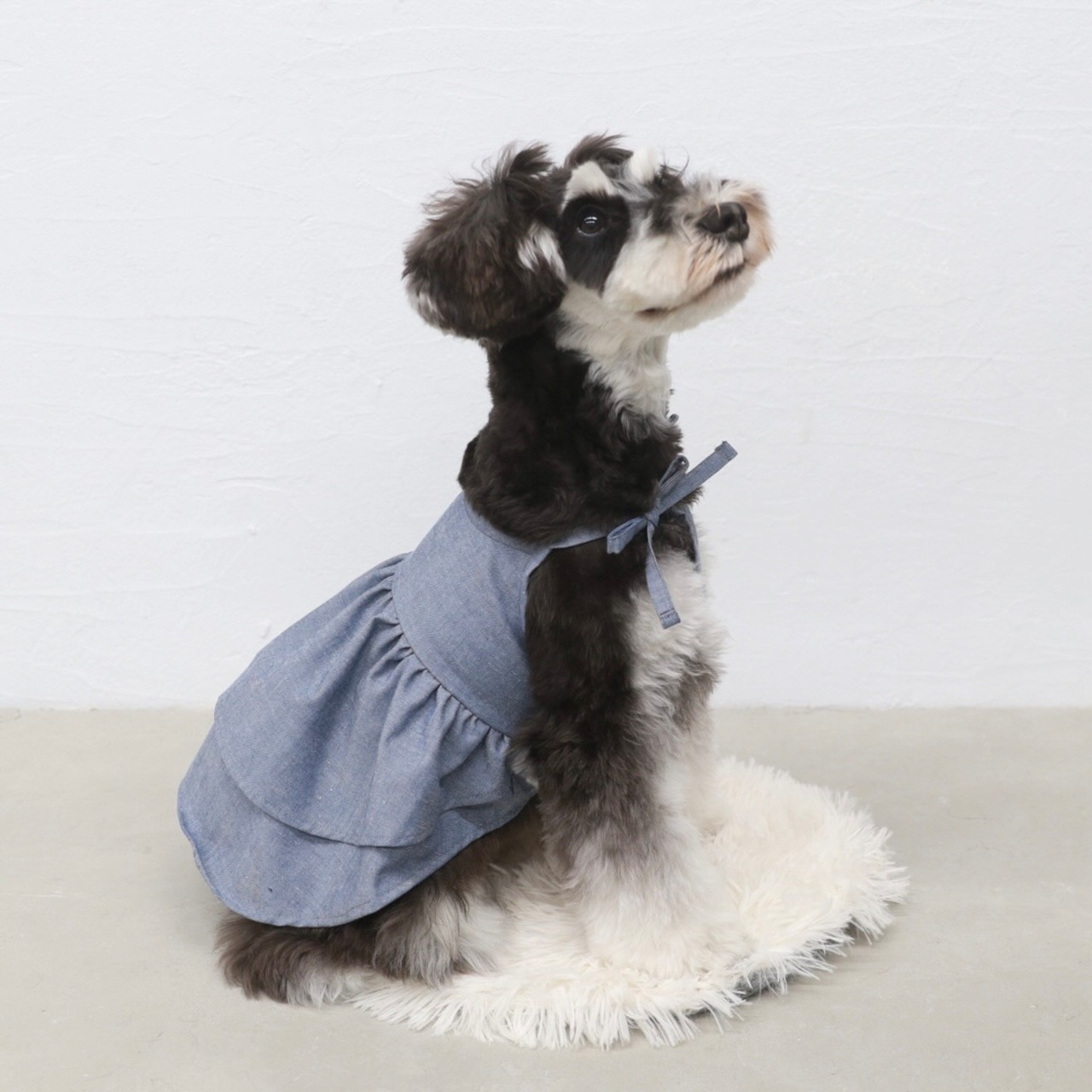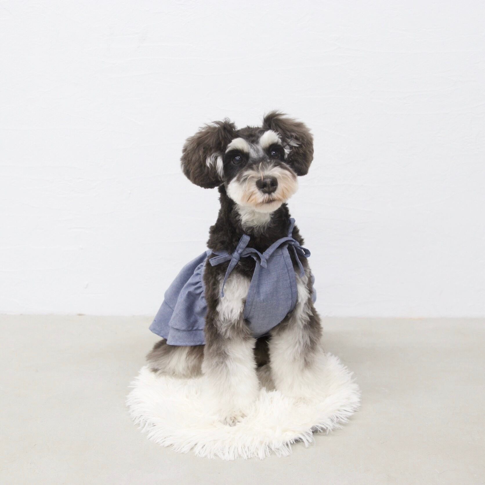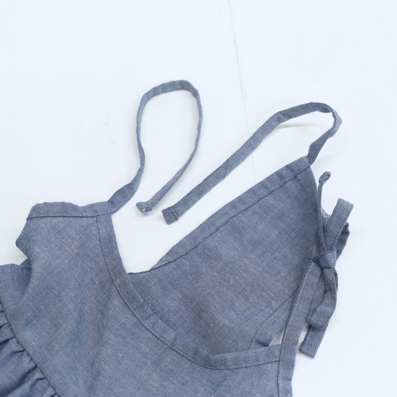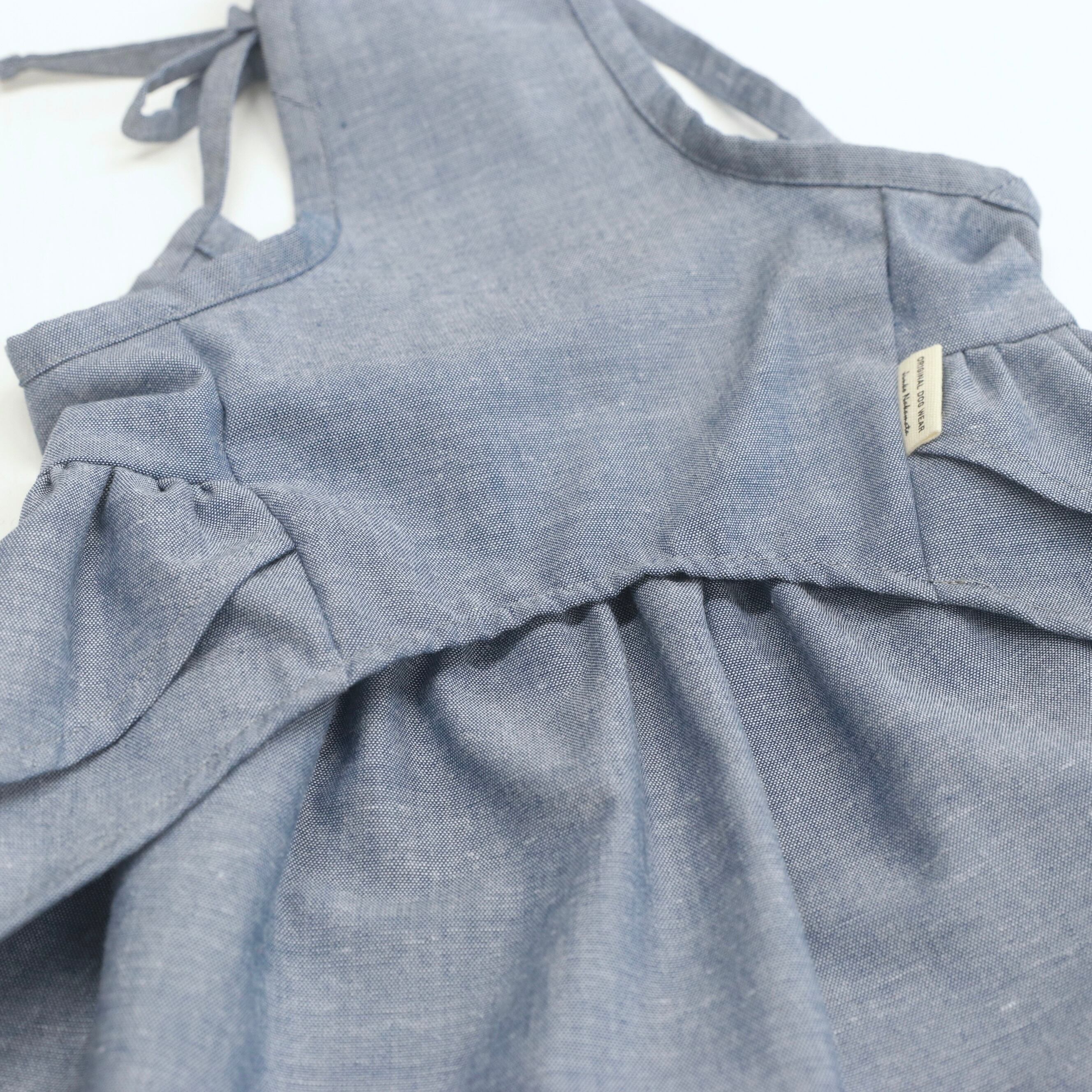 デニム風カラーの肩紐フリルワンピース